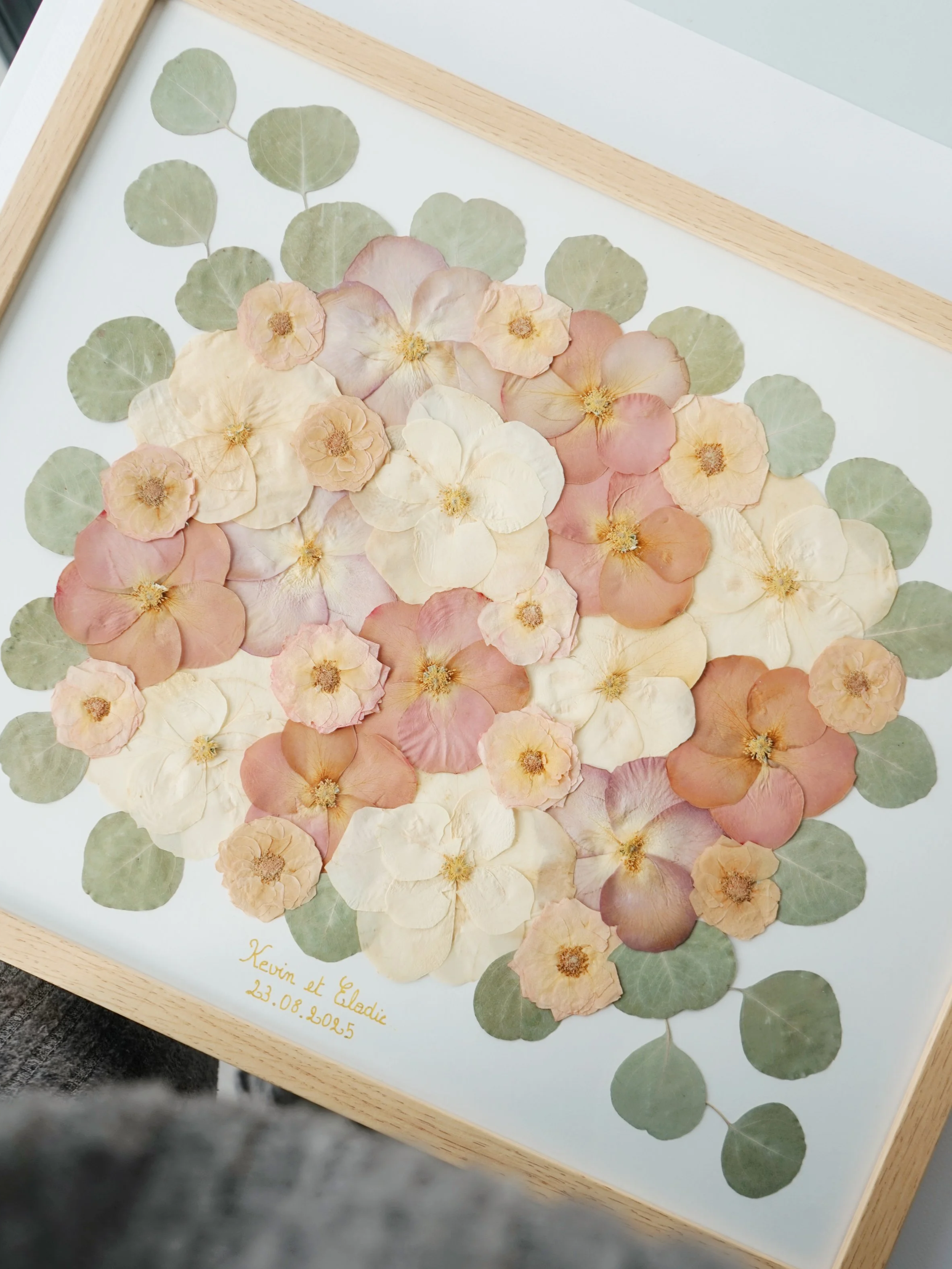 Du bouquet frais à un souvenir éternel - Nous transformons votre bouquet de mariée en un cadre unique.